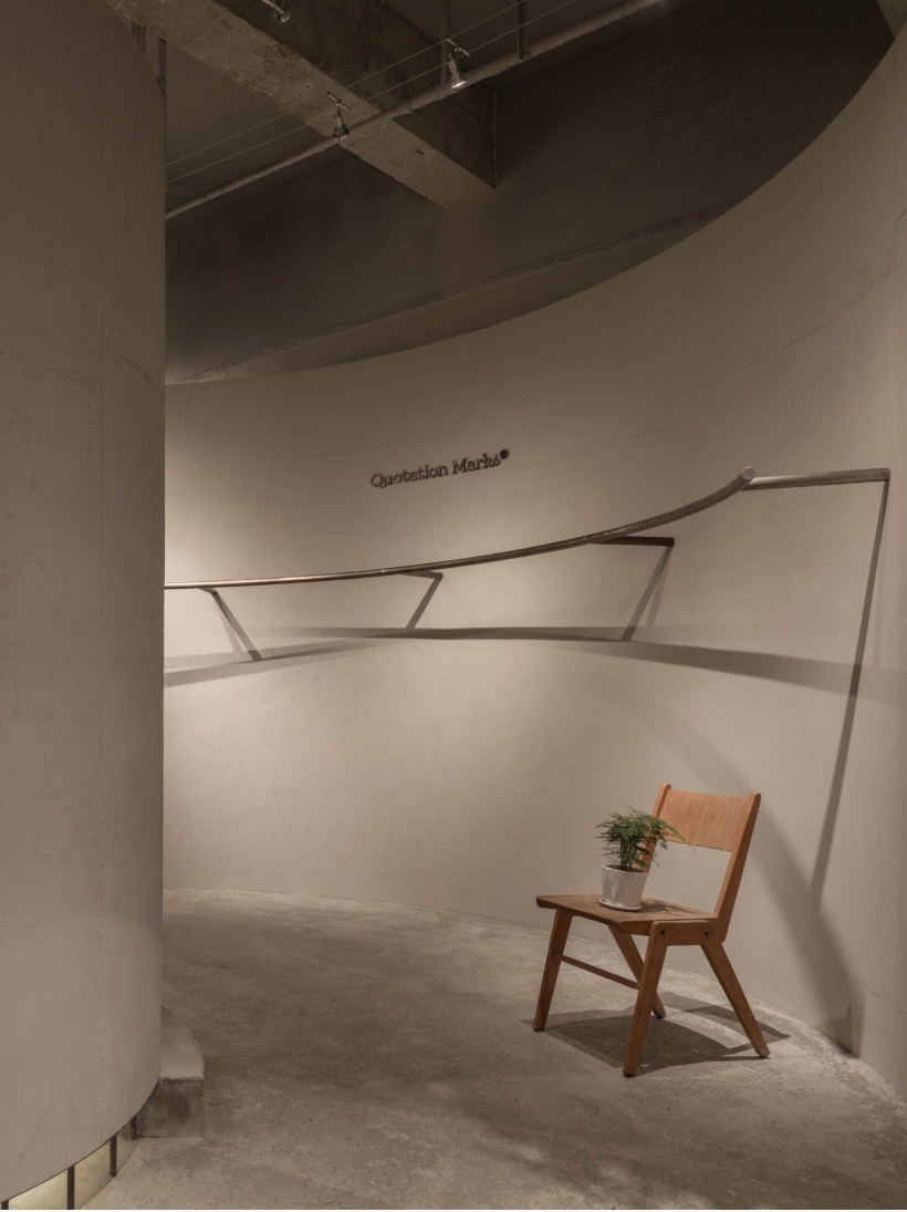 Quotation Marks首家門(mén)店希望以體驗(yàn)生活方式、感受內(nèi)在精神的初衷進(jìn)行具象傳達(dá),通過(guò)自然與工業(yè)、材料與形態(tài)表現(xiàn)現(xiàn)代社會(huì)中人能觸摸到、感受到的空間環(huán)境或是貼身衣物。