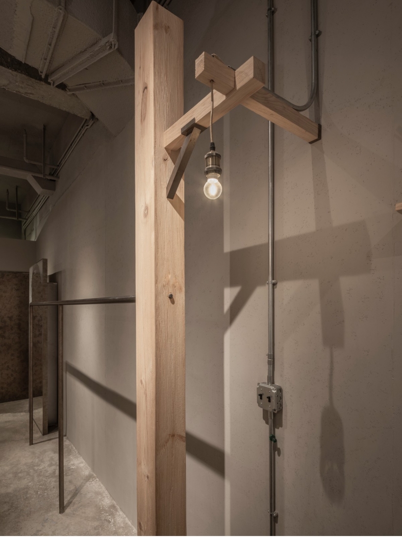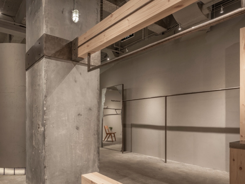 試衣間材質(zhì)以水泥為主,輔以架空地面和鋼筋支撐,呈現(xiàn)出日本粗野現(xiàn)代主義風(fēng)格的獨(dú)特魅力。不僅是一種設(shè)計(jì)概念,更是對(duì)空間美學(xué)與品牌契合的深度探討。
